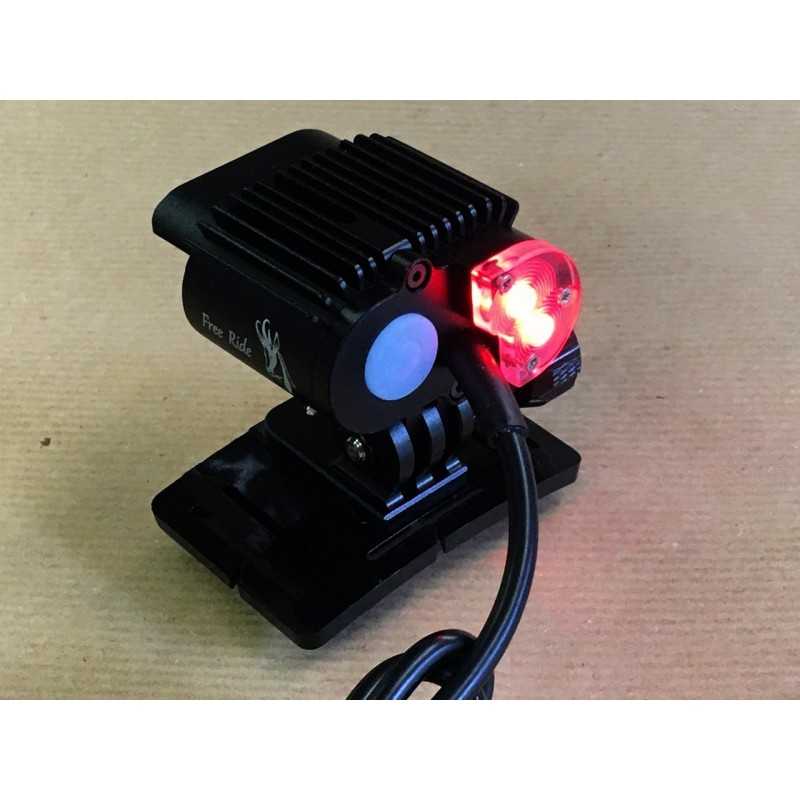 Les deux puissantes leds arrières rouges intégrées permettent d'être bien vu lorsque vous roulez sur la route avec la lampe sur le casque. Elles sont activables indépendamment des leds avants.