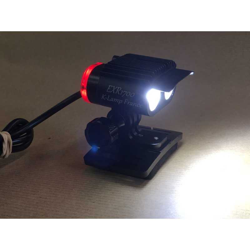 Évolution de la lampe haute puissance EXR1700, plus orientée Vélo / VTT engagé que la version normale, avec un faisceau plus profond, mais qui reste bien large et très progressif (l'intensité lumineuse au centre du faisceau est doublée par rapport à la EXR1700 normale);