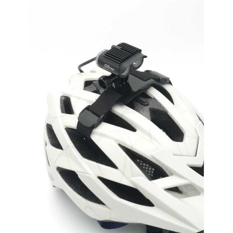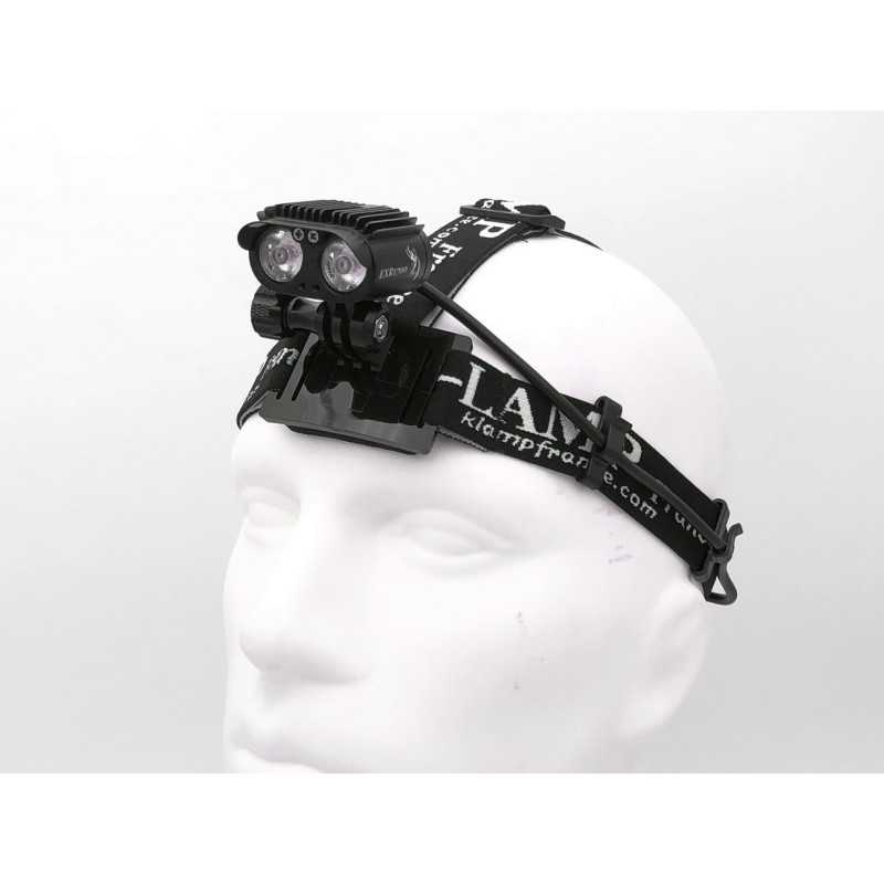 -support pour montage au casque ou en frontale, sangles pour montage au casque, bandeau souple pour montage frontale;