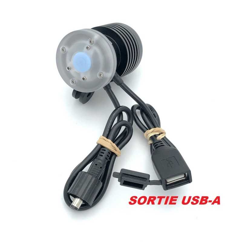-un câble USB pour brancher la lampe sur powerbank en secours (la puissance d' éclairage dépendra de la puissance que peut donner le powerbank